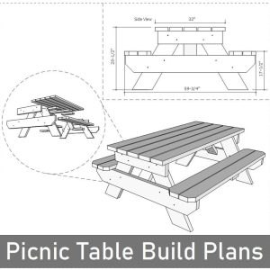 Picnic Table Plans, DIY Backyard Table, 6 Foot Outdoor Garden Table, Patio Furniture Blueprints.