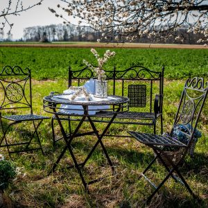 Vintage Metal Garden Bistro Set – 3-Piece Folding Patio Set with Table & 2 Chairs, Shabby Chic Outdoor Furniture