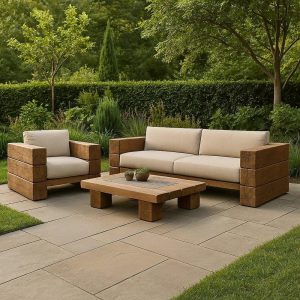 Rustic Wood Sofa Set for Garden Patio and Outdoor Lounge