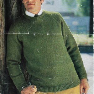Mens Fishermans Rib Sweater Crew Round Neck Raglan Sleeve 38-42″ DK 8 Ply Light Worsted Knitting Pattern PDF Digital Download