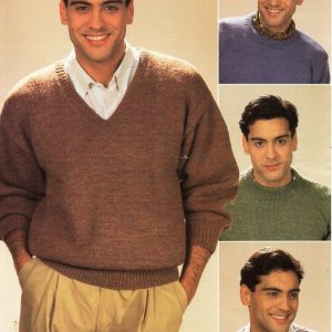 mens classic sweater knitting pattern pdf DK v or round neck jumpers 36-46″ DK light worsted 8ply pdf Instant download