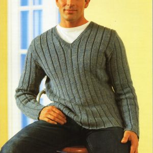 mens sweater knitting pattern pdf mens v neck ribbed jumper pullover 34-42″ DK light worsted 8ply pdf instant download