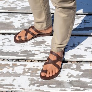 Handmade Moroccan Leather Sandals for Men – Traditional Brown Slides | Artisan Open Toe Slip-On Slippers | Flat Rustic Shoes for Comfort