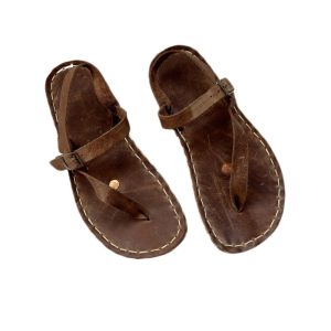 Men’s Handmade Moroccan Leather Sandals – Brown Criss-Cross Strappy Design – Traditional Flat Shoes – Durable & Comfortable Summer Sandals