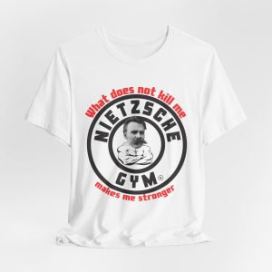 Be the first to review “Nietzsche Fitness T-Shirt – “What Does Not Kill Me Makes Me Stronger” – Nietzsche Gym Parody Tee – Philosophy Meets Fitness” Cancel reply