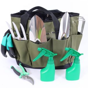 Personalized Gardening Tools Set of 10, Heavy Duty Garden Tools Set with Handbag, Durable Gardening Supplies Kit Ideal Garden Gift for Women